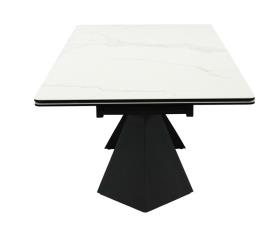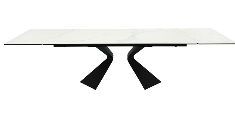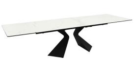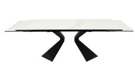 Vous désirez un salon salle à manger unique et moderne pour recevoir avec style vos convives, découvrez dans notre gamme de mobilier la table repas GLORIA TESSA GRAPH. Piétement en métal laqué époxy noir, dessus en céramique Graph KL168 de 3mm sur verre trempé 10mm. A allonges pour recevoir 12 à 14 personnes.