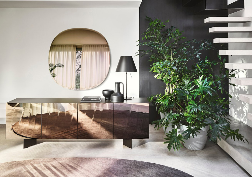 Calligaris Réf. CS6213-1 Dimensions : l 181 x h 78 x p 50 cm Ritratti est une porte en miroir caractérisée par des découpes verticales. Un hommage à l'art contemporain, elle transforme le buffet en un meuble dynamique qui se fond dans l’environnement en reflétant son image. buffet