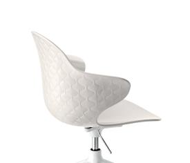 C’est l’esprit créatif, au carrefour entre design et fonctionnalité, qui distingue la chaise SAINT TROPEZ, dont les caractéristiques essentielles sont le soin du détail et le design recherché et décoratif avec la réalisation d’un dossier à effet capitonnage. La coque en polycarbonate est réalisée dans de chaudes tonalités transparentes ou dans des couleurs couvrantes brillantes. La base est disponible en métal ou en bois, dans différentes finitions sur un piètement à branches ou sur roulettes.. Cette version pivotante avec vérin à gaz est parfaite pour le bureau. Choisissez votre préférée.