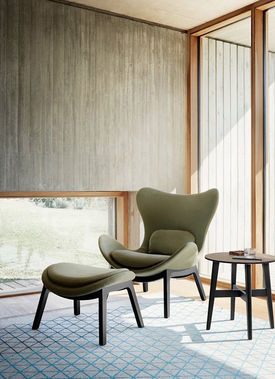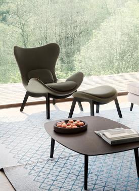 LAZY avec son piètement en frêne massif ou en métal, s'intègre facilement dans le coin salon, dans la zone nuit comme fauteuil de chambre, et il est la solution parfaite pour différentes ambiances du secteur ho.re.ca.