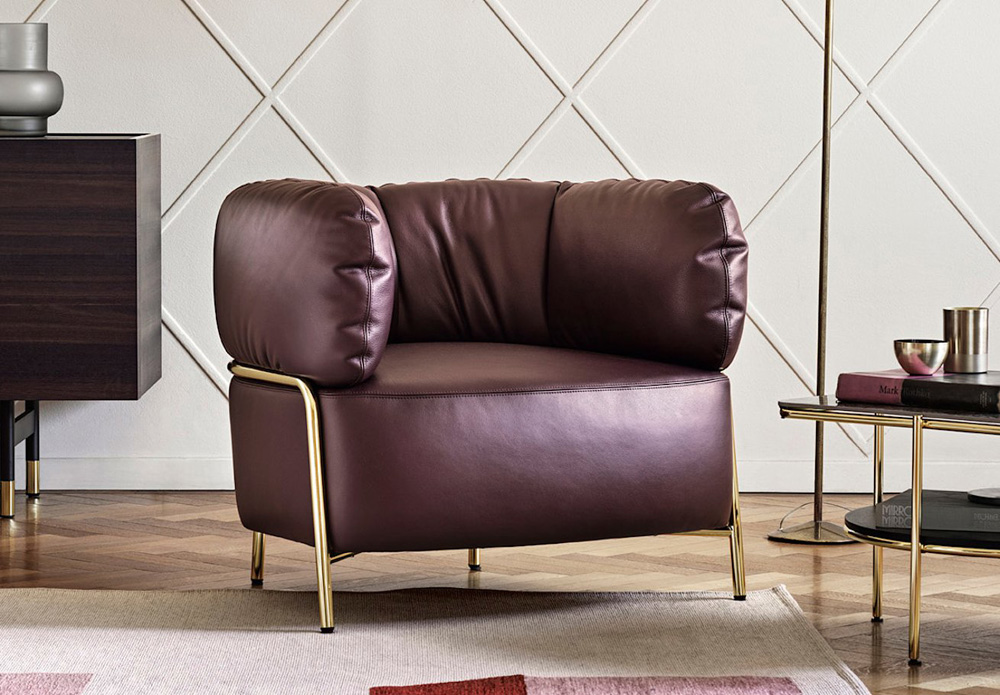 Il peut être revêtu de cuir et de tissu, par une combinaison bicolore et/ou dans des matériaux différents. fauteuil