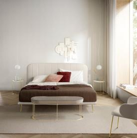 Calligaris Design. Stefano Spessotto - Réf. CS6097 Dimensions : l 186 x h 106 x p 212 cm Moderne, simple, aux formes harmonieuses et organiques, le lit Le Marais s'intègre facilement dans des environnements classiques et modernes. Style clairement inspiré par un goût art déco, mais rendu plus contemporain par les coutures verticales de la tête de lit large. La base métallique élégante et fine est soulignée par la structure légère et sinueuse de la tête de lit, caractérisée par leurs coutures verticales. Le matelas repose sur le sommier à lattes inclus dans la structure capitonnée. Créez le lit idéal : modules et pieds personnalisables avec 100+ tissus, couleurs et textures. Options cuir ou techniques pour style intérieur.