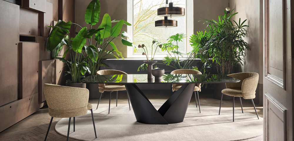 Calligaris Table fixe avec base en métal, Design. Archirivolto design - Réf. CS4159-FB-200 Dimensions : l 199 x h 74 x p 100 cm Une table importante, conçue pour être le protagoniste du salon contemporain. Calla se distingue par sa base qui rappelle une fleur : solide mais en même temps légère, elle est constituée de deux lames de métal qui s'emboîtent comme des pétales, créant une forme de calice qui s'ouvre vers le haut, suggérant vitalité et renaissance.