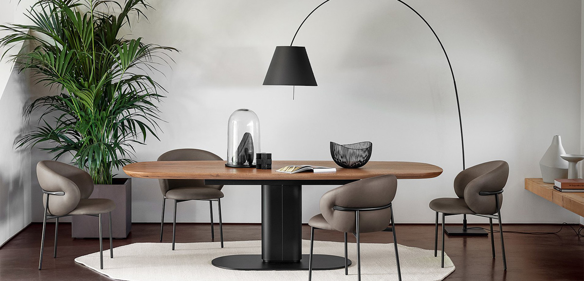 CAMEO est une table fixe aux lignes ovales bien définies qui lui confèrent une forte personnalité, garantissent sa stabilité et permettent d’optimiser au maximum les espaces situés sous le plateau. La colonne centrale, en métal teinté, soutient les différents types de plateaux : la combinaison métal / bois est toujours raffinée et le métal / céramique à effet marbre, qui joue sur la combinaison des matériaux froids et chauds, est très contemporain.