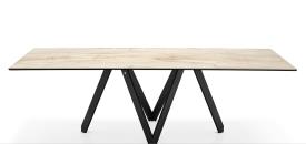 CARTESIO est une table à la ligne élégante et iconique, caractérisée par une originale structure portante en métal teint et composée de 4 éléments en « V » rectangulaires et indépendants. Sculpturale et moderne, elle marquera de ses traits solides les espaces plus classiques et rigoureux. Découvrez tous les détails.