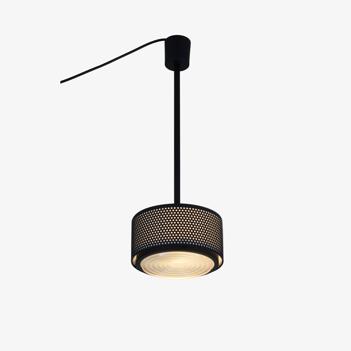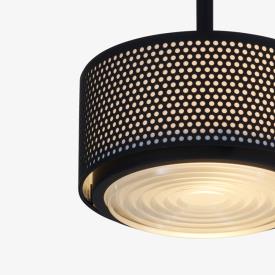 Accessoire en métal à la longueur de câble modulable. Créé par Pierre Guariche en 1955, ce modèle est composé d’une grille en métal perforé et d’une authentique lentille de Fresnel, au sein desquels se diffuse la lumière. Suspension constituée d'un cylindre en acier multi perforé peint (corps et tige noir). Support lentille en aluminium peint. Lentille Fresnel verre pressé. Variateur. Livré avec une ampoule LED 330° - 9 W - E27 standard - 2700 K - 806 Lumens. Fourni équipé de 3 m de câble et pavillon alu pour raccordement sur bornier 3G1,5 - classe 1 - tension d'alimentation 220-240V 50/60Hz.