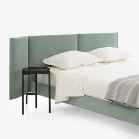 Hypna est un lit proposant une nouvelle fonction et un nouvel usage, qui se caractérise par sa tête de lit de type paravent (vantail). Grâce à sa forme minimaliste et à ses dimensions retenues, il convient aussi bien à de grandes chambres mais également parfaitement dans des pièces de taille modeste. La tête de lit avec ses côtés mobiles permet à l´utilisateur en l´ouvrant ou la fermant de créer différentes configurations de sa pièce et de réaliser si besoin une pièce dans la pièce. La position fermée des côtés répond au souhait de l´utilisateur recherchant protection, un lieu pour se retirer et repos. L´ouverture des côtés mobiles agrandit la partie couchage dans sa fonction – créant un espace pour des meubles de complément comme une petite table de nuit ou un banc, et ouvre en même temps formellement la partie couchage sur le reste de la pièce. Les lignes verticales caractéristiques de la tête de lit soulignent la fonction et sont également un élément formel. La géométrie de la tapisserie est en relation avec les lignes verticales, et communique ainsi avec clarté une invitation à se reposer et à interagir.