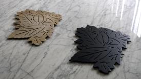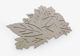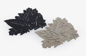 Le repose-plat Feuillage tire son inspiration de la beauté organique des feuilles délicates. Il incarne l'union parfaite entre un design inspiré de la nature et des matériaux de qualité supérieure. L’élément important de l’art de la table, le dessous de plat, en beige rosé ou noir mat, reprend l’idée du lit de feuille quelques fois utilisé pour un plateau de fromage. Ce bel objet pourra être utilisé également comme élément décoratif. La technique de découpe du motif fin au laser, et le besoin de la faible conductivité du matériau impose l’utilisation de l’inox, matériau recyclable. Chaque détail est méticuleusement découpé au laser, créant ainsi une silhouette élégante et évoquant la grâce naturelle des feuillages. Repose-plat en tôle inox découpée laser, laquée noir mat ou en tôle inox brossée, étamée (dépose d’une couche d’étain par électrolyse) beige rosé vernis mat. Logo designer sous le repose-plat.