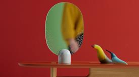Confetti est un miroir ovale à poser, composé d'une base en marbre et d’une glace dont la partie inférieure est ornée d'un décor dépoli. Sur son reflet, un dégradé subtil de petites formes, semblables à des confettis éparpillés par le vent, ajoute un détail enjoué et poétique à l'objet. Ce jeu de dégradé crée une harmonie avec le reflet du miroir et établit un lien délicat avec son piétement. La base cylindrique en marbre, à la fois solide et élégante, offre un contraste délicat avec la finesse du miroir et son décor. Confetti joue l'équilibre entre la légèreté du design, la solidité et l'opacité du marbre, créant une expérience visuelle, joyeuse et intrigante. C'est une invitation à explorer la beauté avec un soupçon de fantaisie. Miroir ovale à poser. Base en marbre de carrare poli, avec traitement hydrofuge, offrant une parfaite stabilité à l’ensemble. Verre miroir avec motifs gravés au laser, épaisseur 5 mm. Dos rétro laqué gris clair.